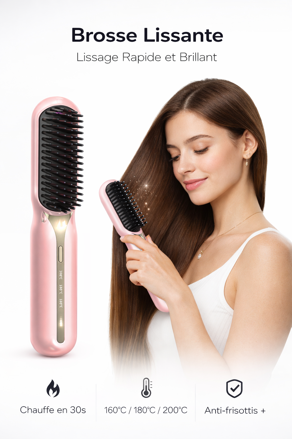 Des cheveux lisses, brillants et sans frisottis en seulement quelques minutes.